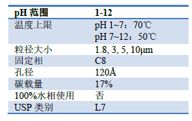 Titank C8 pH=1-12,高至100%水相流動相穩定
