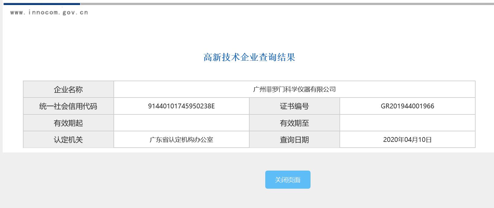 根據(jù)國家《高新技術(shù)企業(yè)認定管理辦法》和《高新技術(shù)企業(yè)認定管理工作指引》的相關(guān)規(guī)定,廣州菲羅門科學(xué)儀器有限公司被認定為國家級高新技術(shù)企業(yè)。 菲羅門高新企業(yè)證書編號:GR201944001966